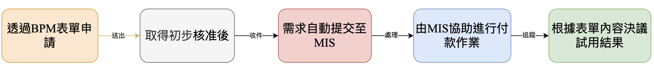 依照下方說明步驟後至 BPM 表單流程提出申請,待流成通過後 MIS 依照表單內容進行付款與後續評估期結果追蹤。